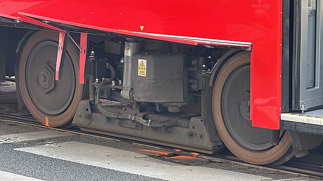 Na tramvajové zastávce Radlická odtahují vykolejenou tramvaj. (28. března 2025)