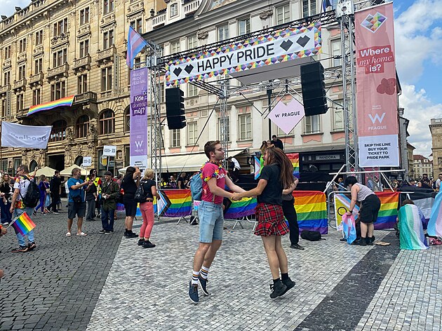 V Praze vrcholí festival Prague Pride. Před polednem se účastníci připravují na duchový pochod směrem na Letnou. (2. srpna 2025)
