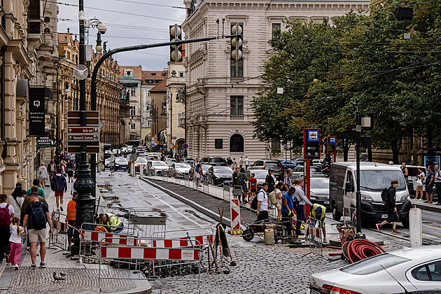 Ostrůvek u pražské tramvajové zastávky Staroměstská se rozšíří o dva metry. (28. července 2025)