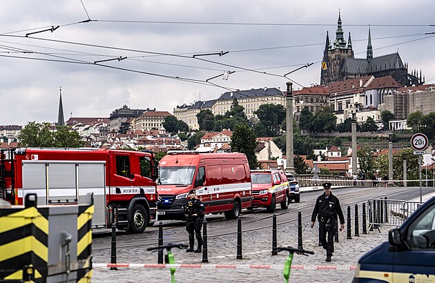 Policie a hasiči řeší před Rudolfinem v Praze únik plynu. (20. května 2025)