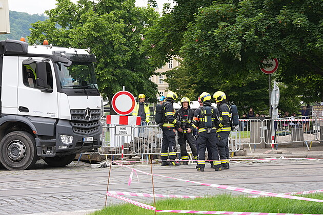 Policie a hasiči řeší před Rudolfinem v Praze únik plynu. (20. května 2025)