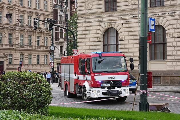 Policie a hasiči řeší před Rudolfinem v Praze únik plynu. (20. května 2025)