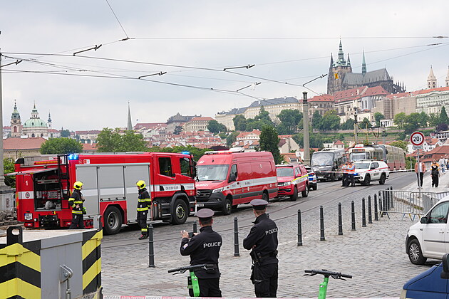 Policie a hasiči řeší před Rudolfinem v Praze únik plynu. (20. května 2025)