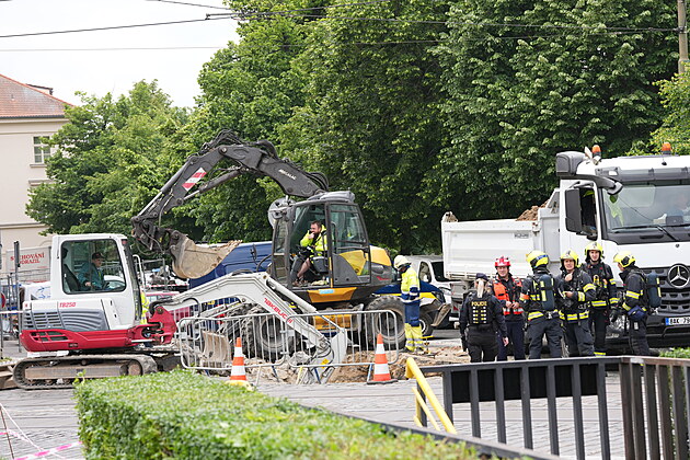 Policie a hasiči řeší před Rudolfinem v Praze únik plynu. (20. května 2025)