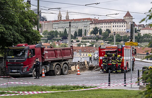 Policie a hasiči řeší před Rudolfinem v Praze únik plynu. (20. května 2025)