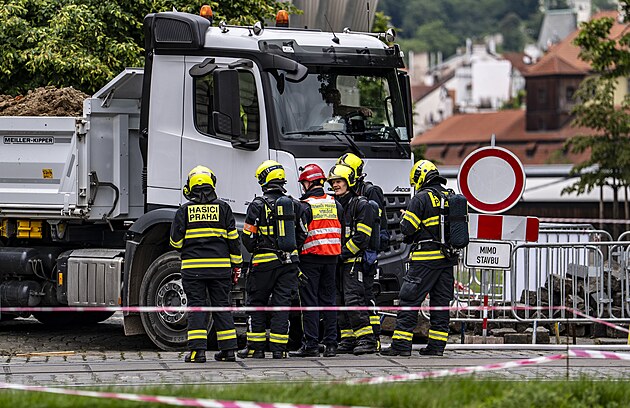 Policie a hasiči řeší před Rudolfinem v Praze únik plynu. (20. května 2025)