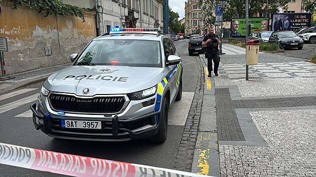 Policie zasahuje u navrtaného plynového potrubí v ulici Ke Karlovu v Praze. (19. května 2025)