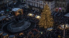 Vysoký 22 metrů, se stovkami koulí. Na Staromáku rozsvítili vánoční strom![]() |