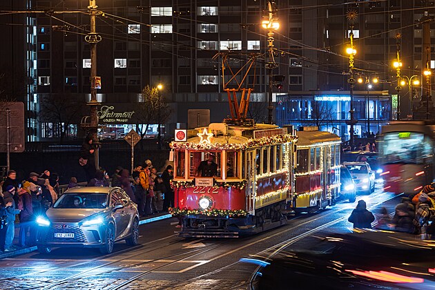 Po celý advent až do Tří králů mohou cestující potkávat v pražských ulicích vánočně nazdobené tramvaje, autobusy i trolejbus. (29. listopadu 2025)