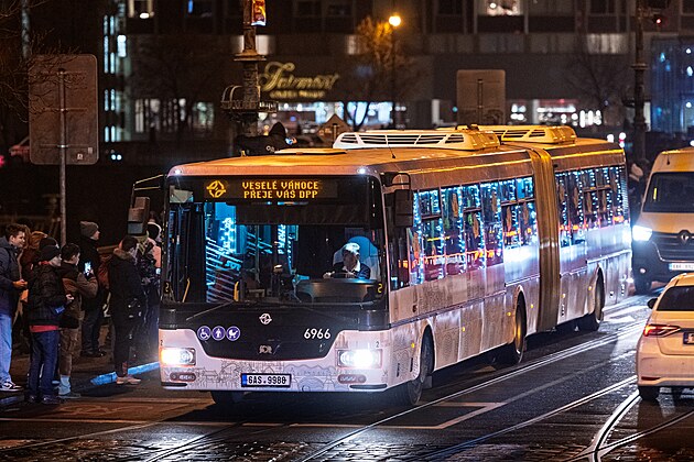 Po celý advent až do Tří králů mohou cestující potkávat v pražských ulicích vánočně nazdobené tramvaje, autobusy i trolejbus. (29. listopadu 2025)
