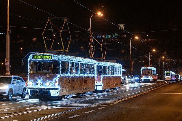 Po celý advent až do Tří králů, tedy do pondělí 6. ledna 2025, mohou cestující potkávat v ulicích Prahy vánočně nazdobené autobusy a tramvaje. (30. listopadu 2024)
