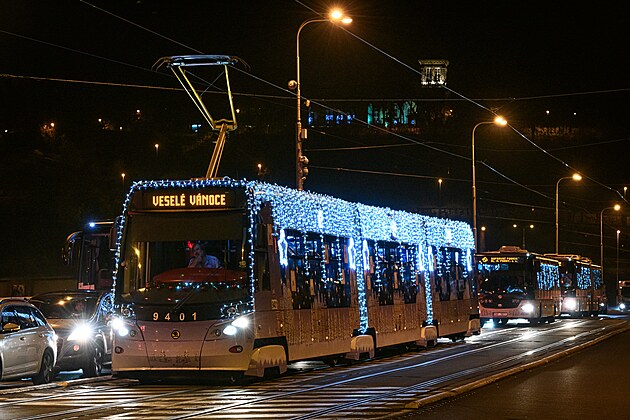 Po celý advent až do Tří králů, tedy do pondělí 6. ledna 2025, mohou cestující potkávat v ulicích Prahy vánočně nazdobené autobusy a tramvaje. (30. listopadu 2024)