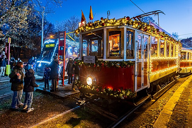 Po celý advent až do Tří králů, tedy do pondělí 6. ledna 2025, mohou cestující potkávat v ulicích Prahy vánočně nazdobené autobusy a tramvaje. (30. listopadu 2024)