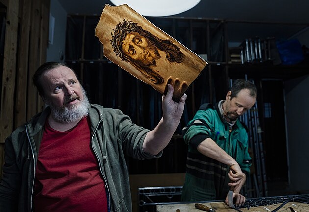 V uměleckém sklenářství Petra Coufala (v popředí) restaurují vitráže katedrály sv. Víta. (20. února 2025)