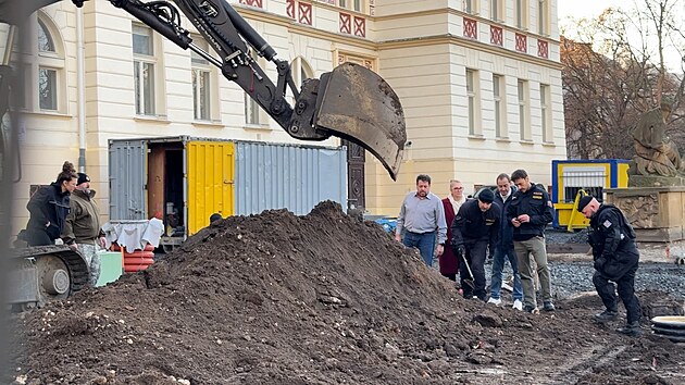 Vyšetřovatelé začali vykopávat kosterní ostatky nalezené v Praze bagristou
