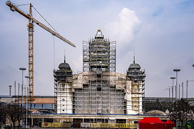 V pražském Průmyslovém paláci ve svižném tempu gradují práce na jeho rekonstrukci a dostavbě levého křídla. (25. březen 2025)