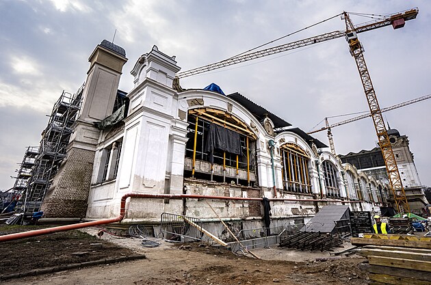 V pražském Průmyslovém paláci ve svižném tempu gradují práce na jeho rekonstrukci a dostavbě levého křídla. (25. březen 2025)