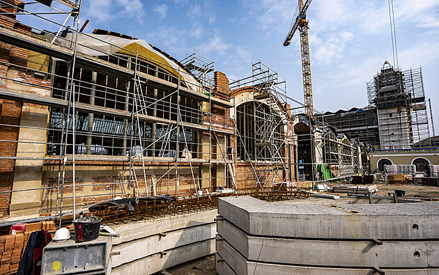 V pražském Průmyslovém paláci ve svižném tempu gradují práce na jeho rekonstrukci a dostavbě levého křídla. (25. březen 2025)