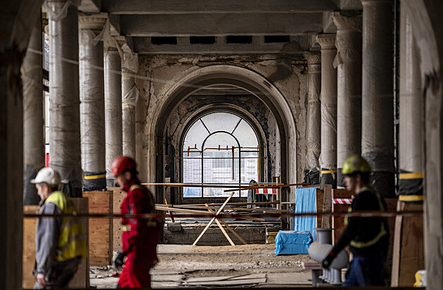V pražském Průmyslovém paláci ve svižném tempu gradují práce na jeho rekonstrukci a dostavbě levého křídla. (25. březen 2025)