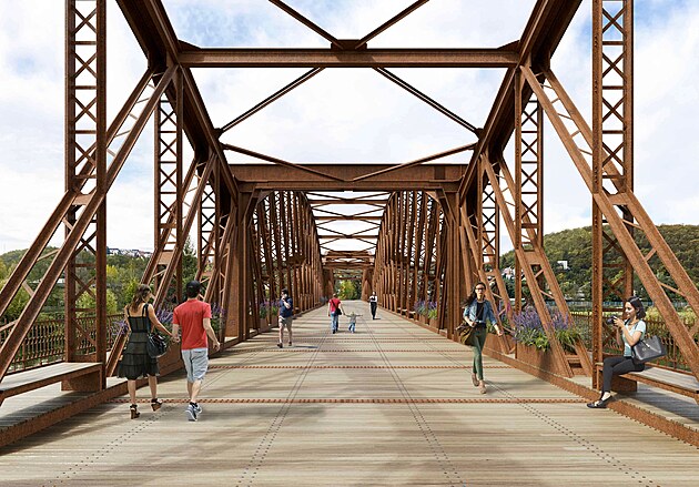 Železniční most na pražské Výtoni se v případě nahrazení novou konstrukcí přesune na místo poblíž modřanského jezu, kde bude sloužit jako lávka pro pěší a cyklisty. (12. srpna 2024)