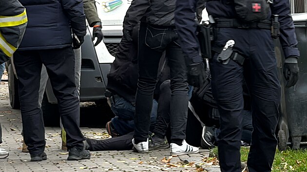 V Praze v ulici 28. pluku proběhl policejní zákrok proti muži, na kterého byl příkaz k zatčení. (21. listopadu 2024)