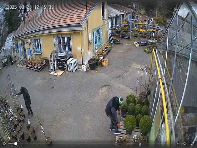 Dvojice lupičů v neděli ukradla několik ovocných stromků z příbramského zahradnictví Petunia. (24. března 2025)
