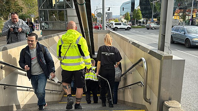Integrovaný záchranný sbor hledá psa v tunelu pražského metra.
