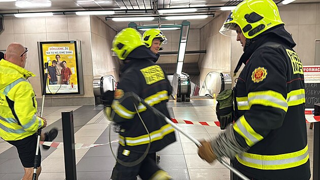 Integrovaný záchranný sbor hledá psa v tunelu pražského metra.