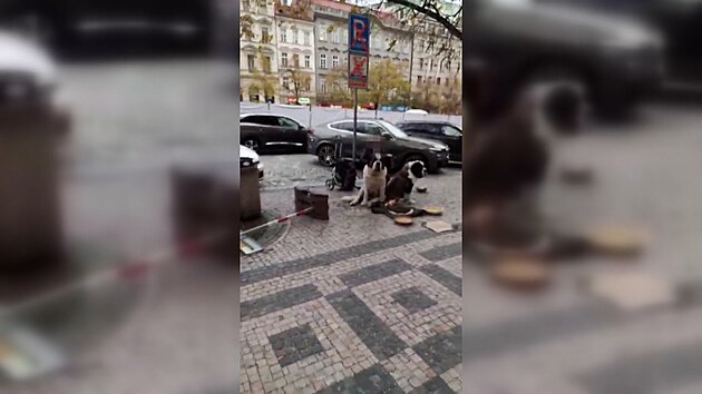 Strážníci pokutují Rumuny žebrací se psy v centru Prahy
