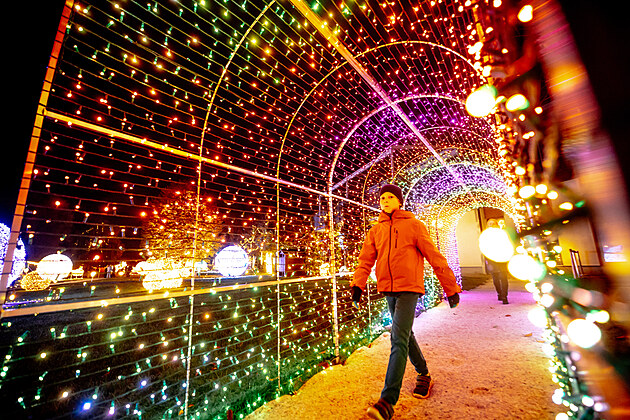 Rozsvícení světelného parku. Světla vyprávějí ve Žlutých lázních v Praze.