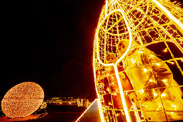 Rozsvícení světelného parku. Světla vyprávějí ve Žlutých lázních v Praze.