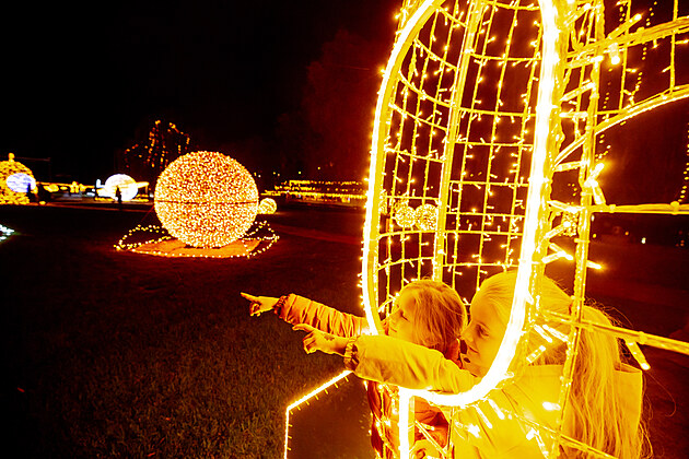Rozsvícení světelného parku. Světla vyprávějí ve Žlutých lázních v Praze.