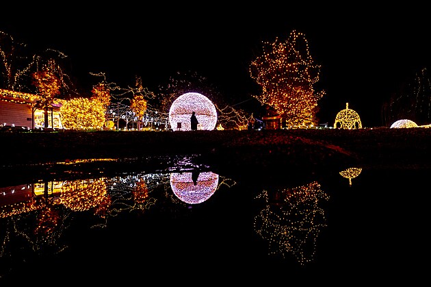 Rozsvícení světelného parku. Světla vyprávějí ve Žlutých lázních v Praze.