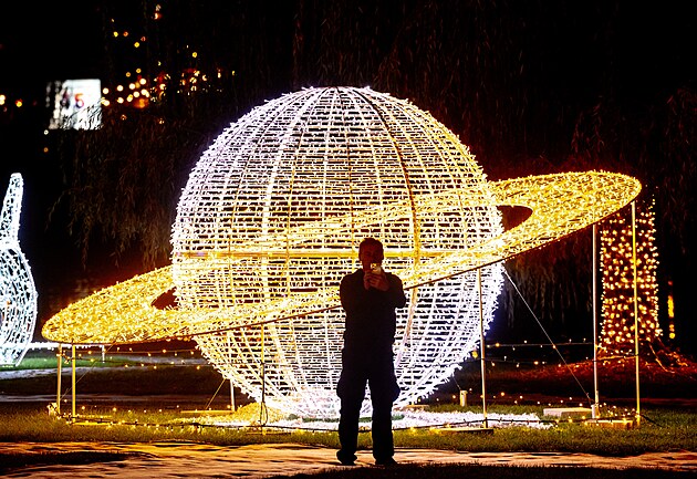 Rozsvícení světelného parku. Světla vyprávějí ve Žlutých lázních v Praze.