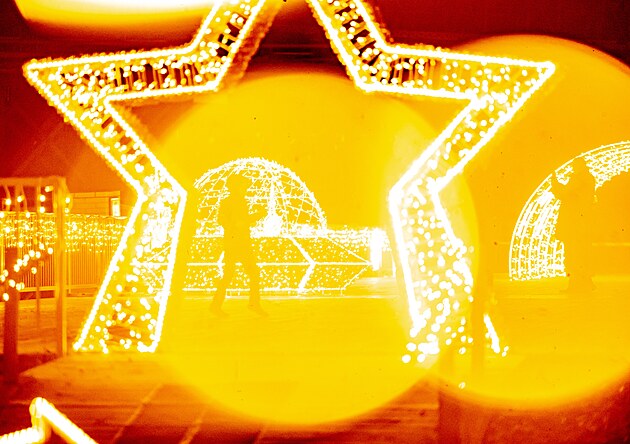 Rozsvícení světelného parku. Světla vyprávějí ve Žlutých lázních v Praze.