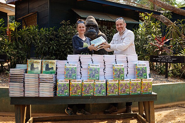 Stovky Gorilích pohádek i nových vzdělávacích brožur byly předány v záchranné stanici Méfou zástupcům organizace Ape Action Africa.