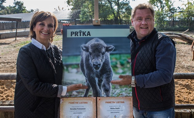 Role kmotrů se ujali herečka Veronika Freimanová a herec Václav Kopta, kteří se při volbě jména inspirovali nesmrtelnou hláškou z filmu Sněženky a Machři, kde si oba zahráli. Zubří samičce vybrali jméno Prťka. „Nikdy jsem žádné mládě nekřtila a je to pro mě premiéra,“ přiznala Veronika Freimanová.