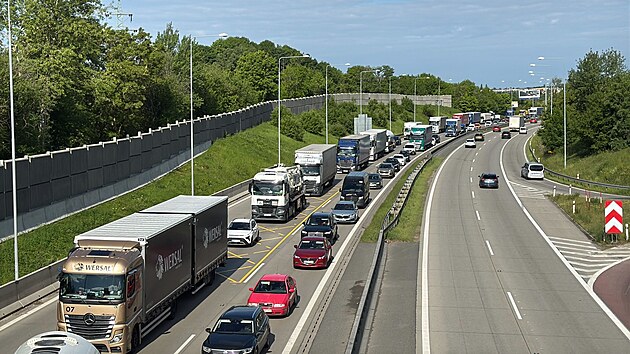 Na Pražském okruhu se tvoří kolona po pádu žulového kvádru z kamionu. (23. května 2025)