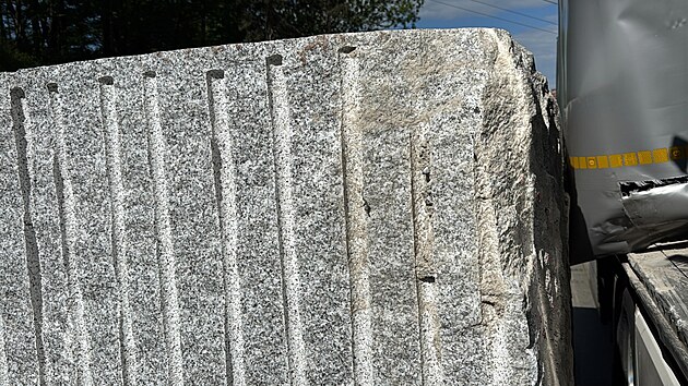 Na Pražském okruhu se tvoří kolona po pádu žulového kvádru z kamionu. (23. května 2025)