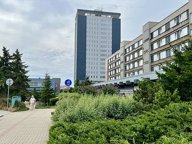Budova bývalého hotelu Armabeton v centru Chomutova. (červenec 2025)