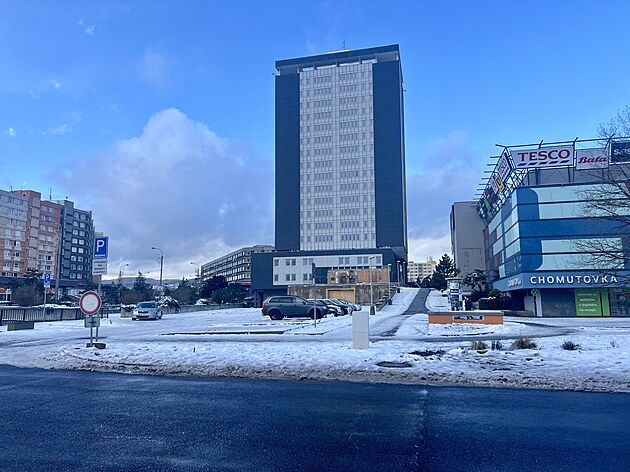 Budova bývalého hotelu Armabeton v centru Chomutova (leden 2025)