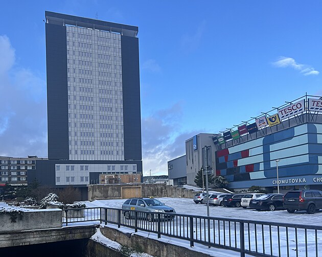 Budova bývalého hotelu Armabeton v centru Chomutova (leden 2025)