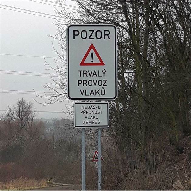 Provozovatel dráhy cedulky před nezabezpečené přejezdy namontoval po několika nebezpečných situacích, kdy řidiči svým chováním ohrozili projíždějící vlaky.