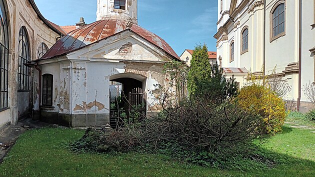 Areál baziliky Panny Marie Sedmibolestné ve čtvrti Bohosudov v Krupce na Teplicku (duben 2025)