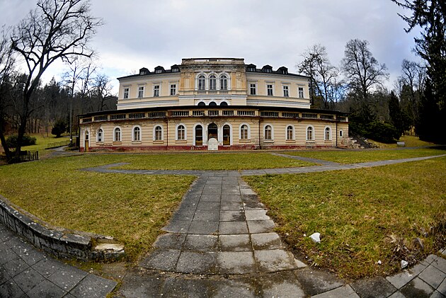 Roky chátrající hlavní lázeňská budova, která je součástí areálu Kyselka v Bílině, se dočká částečné rekonstrukce. (březen 2025)