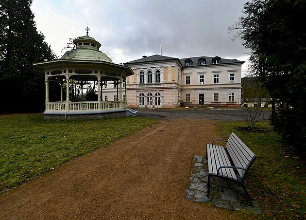 Roky chátrající hlavní lázeňská budova, která je součástí areálu Kyselka v Bílině, se dočká částečné rekonstrukce. (březen 2025)