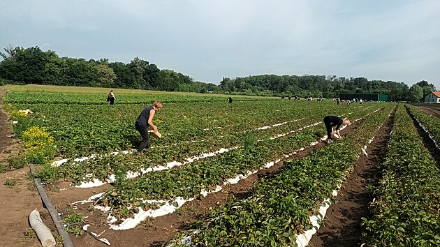 Samosběr jahod v Brozanech na Litoměřicku. (1. června 2025)