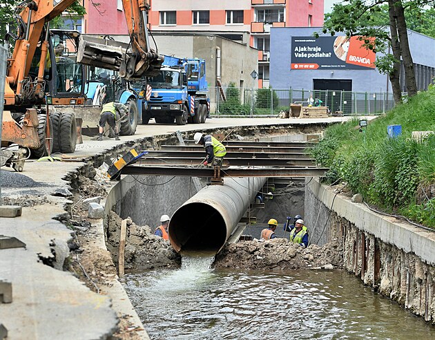Opravy koryta potoka Bystřice v Teplicích (květen 2023)