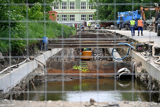 Opravy koryta potoka Bystřice v Teplicích (květen 2023)