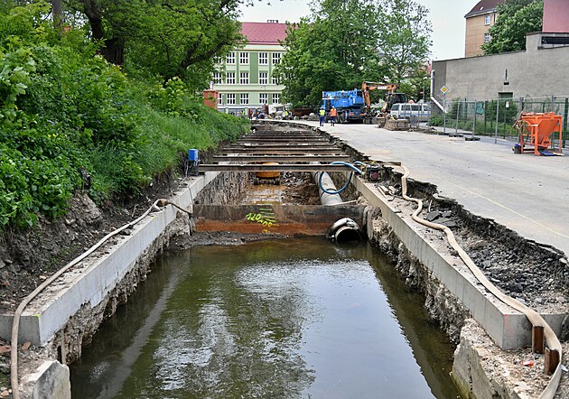 Opravy koryta potoka Bystřice v Teplicích (květen 2023)